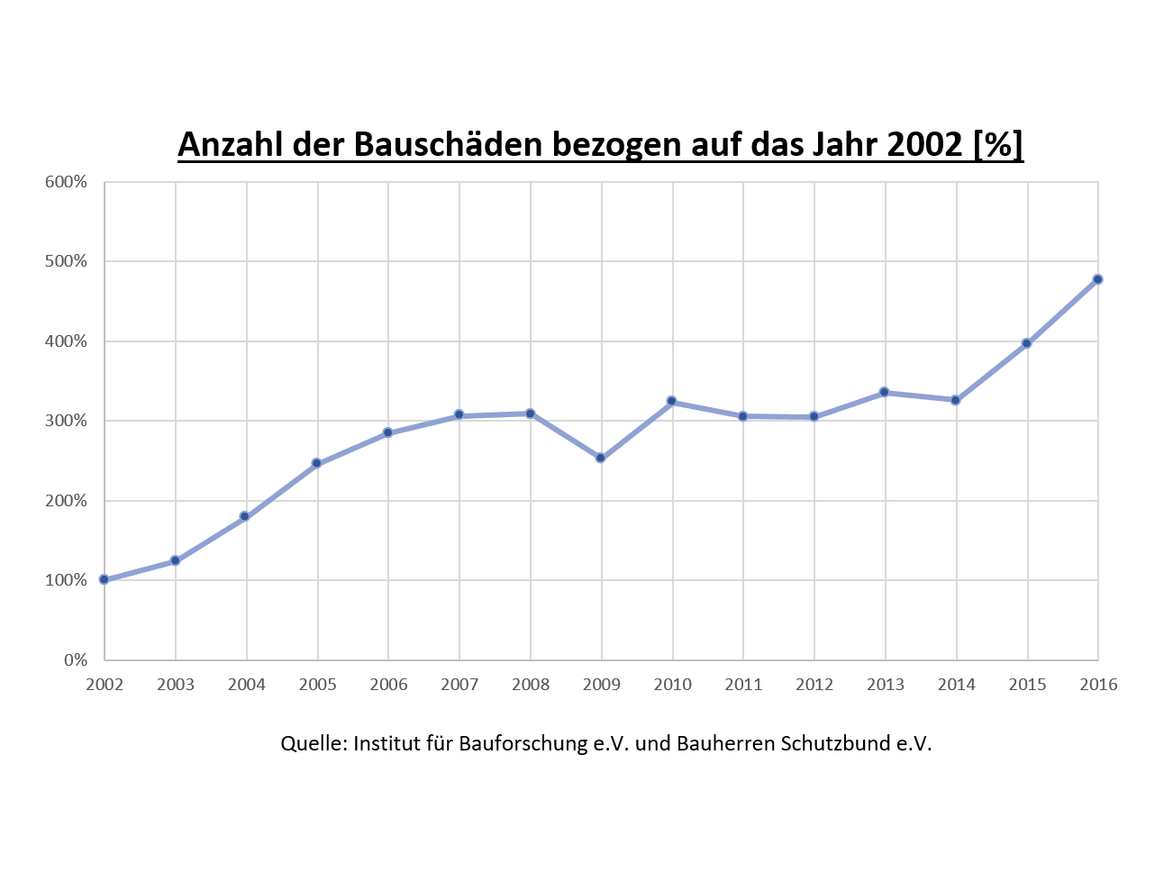 Die Schadenshöhe aufgrund Baumängel ist in den letzten Jahren kontinuierlich gestiegen. In den schlimmsten Fällen reichen die Mängelfolgen soweit, dass es zum Gebrauchstauglichkeitsverlust der neu gebauten Immobilie führt und somit die Immobilie praktisch unbewohnbar, sowie unverkaufbar wird.